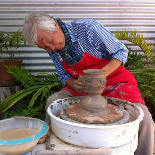 Las integrantes del taller tuvieron la oportunidad de observarlo mientras torneaba con maestría otorgándole sello propio a sus piezas sin retornearlas.
